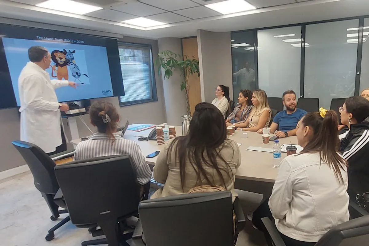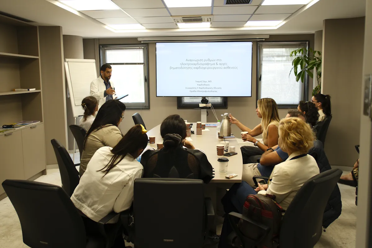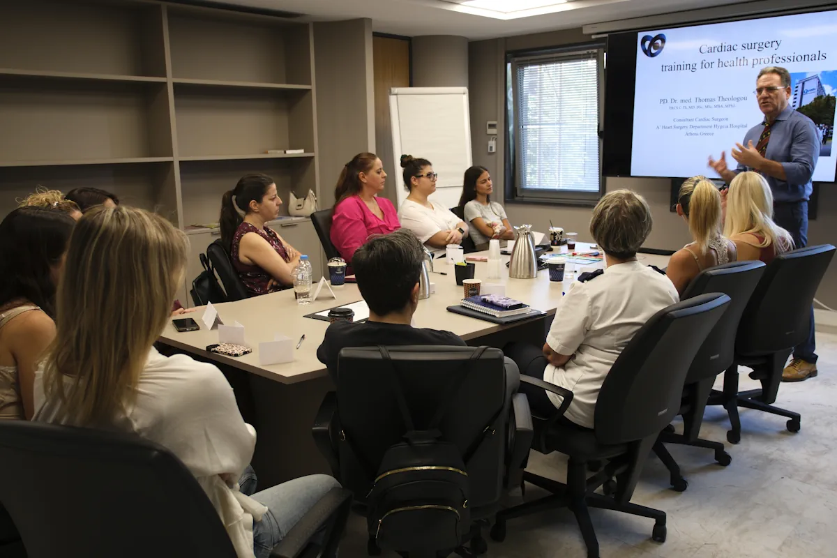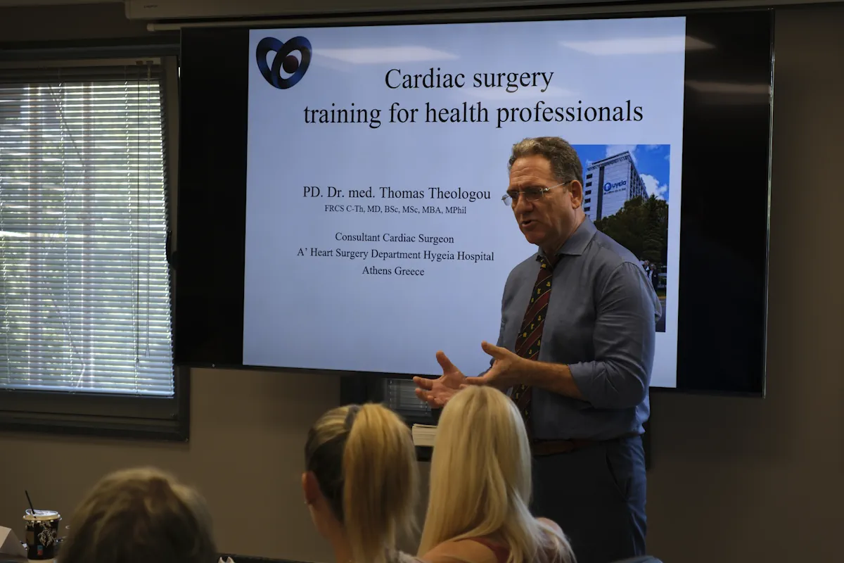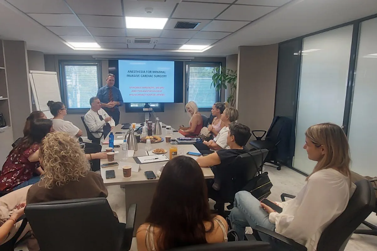 Εκπαιδευτικό σεμινάριο στην ελάχιστα επεμβατική καρδιοχειρουργική, προσαρμοσμένο για νοσηλευτές ορόφων και ΜΕΘ. Καλύφθηκαν βασικά θέματα, όπως αρχές της καρδιοχειρουργικής, ερμηνεία του ηλεκτροκαρδιογραφήματος, περιποίηση πληγών μετά την επέμβαση, διαχείριση του πόνου και οι νεφρικές επιπλοκές.